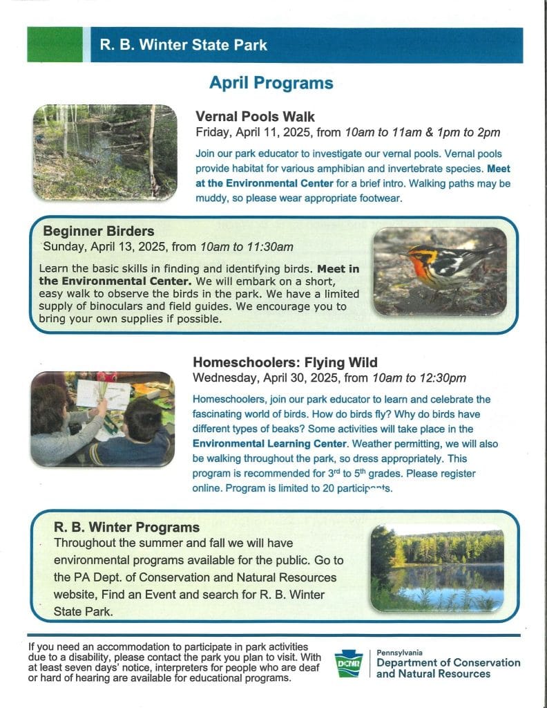 April Programming @ R.B. Winter State Park (Mifflinburg)