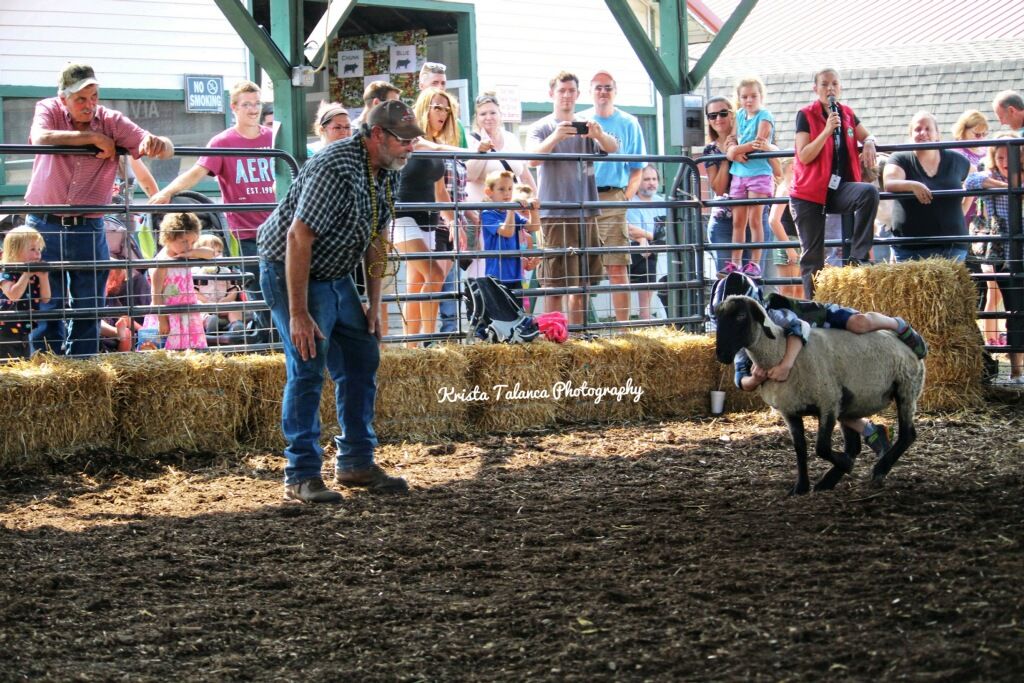 Have you heard of Mutton Busting?! They put children on sheep (with a helmet), and see how long they can stay on! This happens in the Bissinger Apple Dumplings Outdoor Ring!