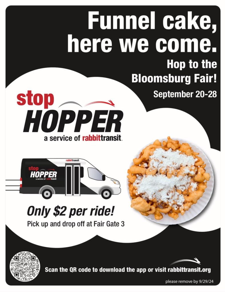 🚐Rabbit Transit Stop Hopper Rides– $2/person; free for seniors-to and from the fair-6:30am-6:30pm (see below)