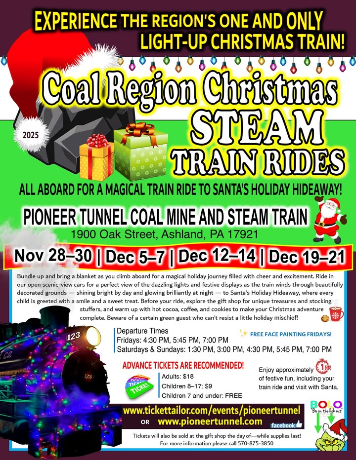 Pioneer Tunnel Coal Mine & Steam Train (Ashland, PA)- Christmas Train rides!