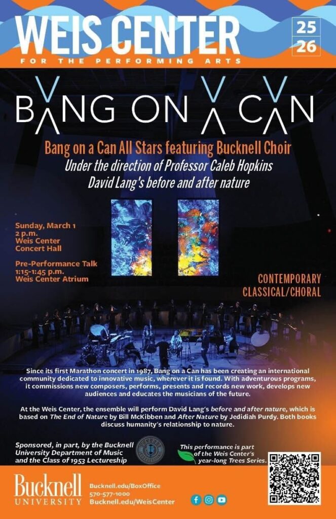 Bang on a Can All Stars featuring Bucknell Choir @ Weis Center for the Performing Arts (Lewisburg)